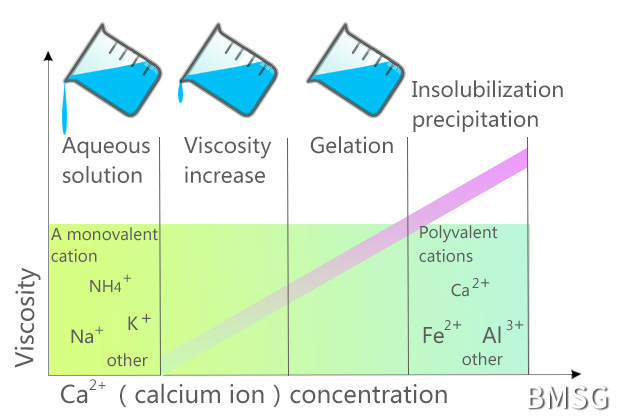 Ammonium alginate can rapidly exchange the ions when encounters the calcium ions to form the gel, whose gel has the thermo irreversible property. The gel formed by the high-G alginates is hard but fragile; By contrast, the gel formed by high-M alginates is good flexibility but hardness. Adjusting the two ration, we can produce different strength gel.