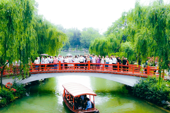 去往江蘇線的同事們則置身于煙雨江南,領(lǐng)略了鐘靈毓秀的自然風(fēng)光。看靈山大佛、賞拈花一笑、觀瘦西湖的初夏。他們?cè)趨莾z軟語(yǔ)的陪伴下,品味了地道的淮揚(yáng)菜系,欣賞了巧奪天工的園林設(shè)計(jì)。在這里有湖光與山色,詩(shī)意與蟬鳴,青石板路與小橋人家;在這里感受“春水碧于天、畫船聽(tīng)雨眠”的意境;在這里欣賞“壚邊人似月,皓腕凝霜雪”的溫婉;在這里體驗(yàn)“春未老,風(fēng)細(xì)柳斜斜”的浪漫。