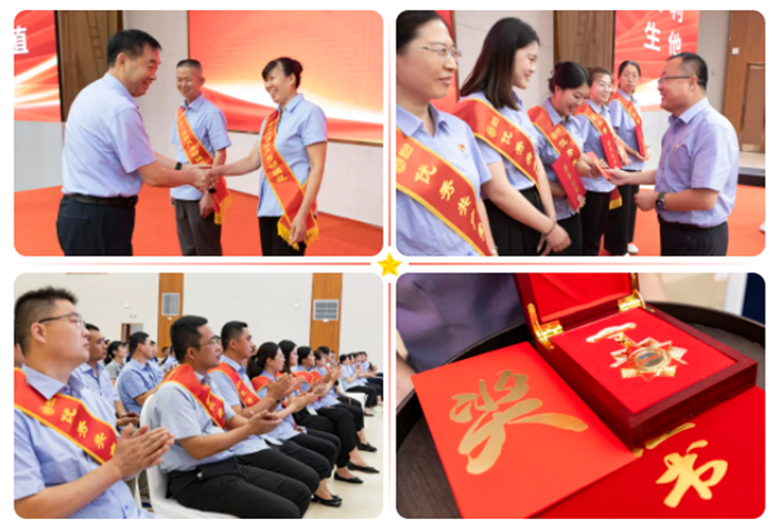 在觀看主題視頻《追光而遇,沐光而行》《豐碑無語,行勝于言》后,集團黨委書記、董事局主席張國防為兩位“明月勞模”頒獎。
