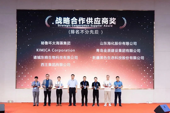 青島明月海藻集團資深副總裁張健為“金牌供應商獎”獲獎者頒獎