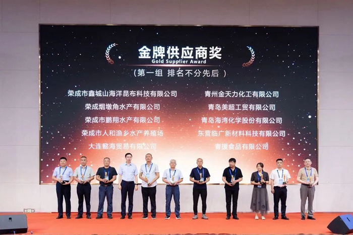 青島明月海藻集團總裁劉兆志為“金牌供應商獎”獲獎者頒獎