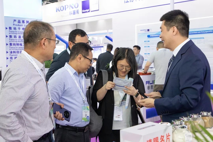 明月此次展出了四大系列印花糊料產(chǎn)品:海藻酸鈉活性印花糊料、分散印花糊料、仿蠟印花糊料,以及全新升級的數(shù)碼印花糊料系列,涵蓋了從傳統(tǒng)印花到前沿數(shù)碼技術的多種應用場景。值得一提的是,明月全系列產(chǎn)品已通過OEKO-TEX標準檢測,綠色環(huán)保、安全無憂。其中,明月數(shù)碼印花糊料系列新產(chǎn)品憑借高穩(wěn)定性、優(yōu)異印花表現(xiàn)及環(huán)保性能成為現(xiàn)場焦點,吸引眾多客戶深入咨詢,展現(xiàn)了數(shù)碼印花作為行業(yè)發(fā)展新趨勢的強勁勢能。