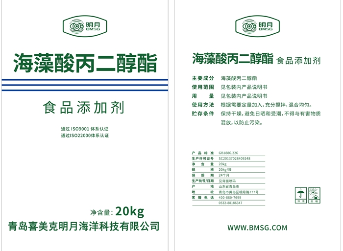 4、海藻酸丙二醇酯具有水合、抗老化、組織改良等特性,適用于生干面制品、生濕面制品、方便米面制品、冷凍米面制品、面包、糕點以及其他焙烤食品等產(chǎn)品中。