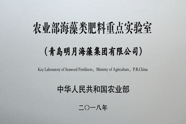 明月海藻集團于2018年1月獲批農業部海藻類肥料重點實驗室。