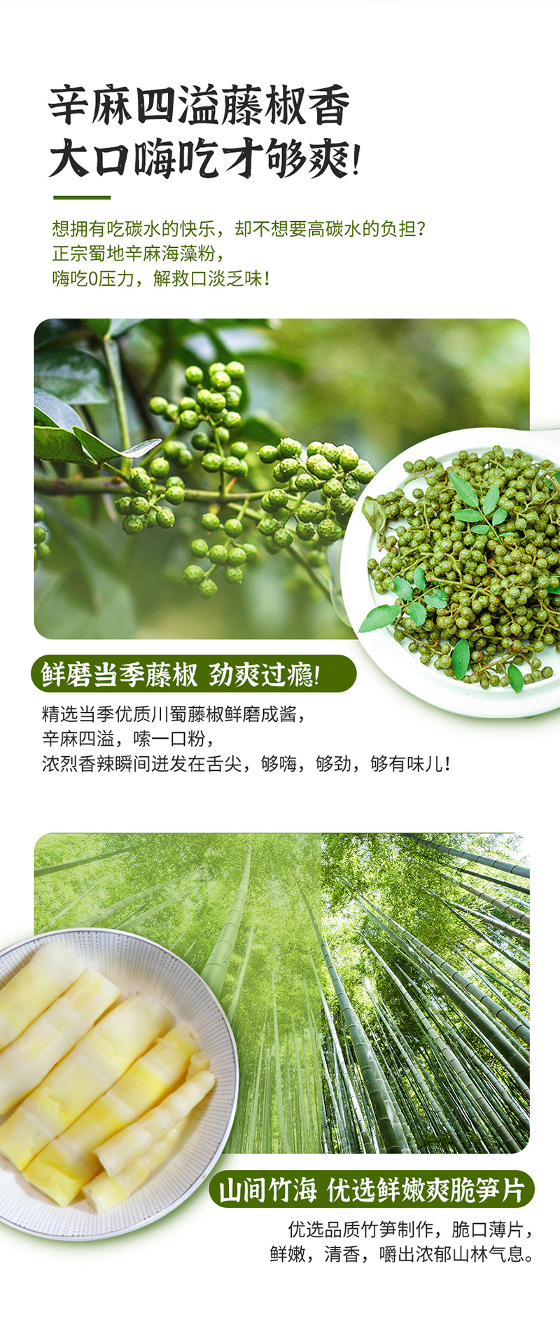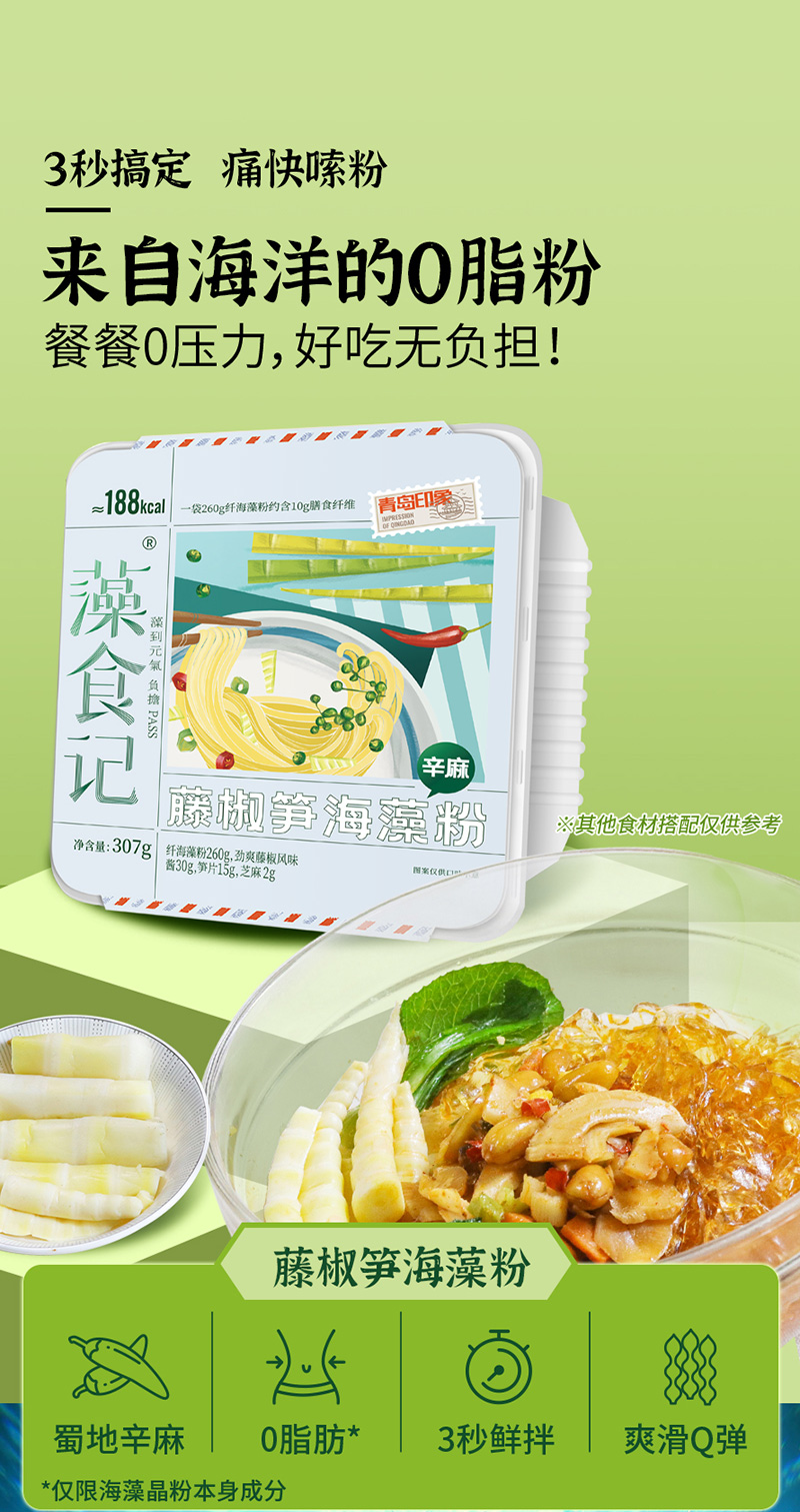 307g(纖海藻粉260g、勁爽藤椒醬30g、筍片15g、芝麻2g)