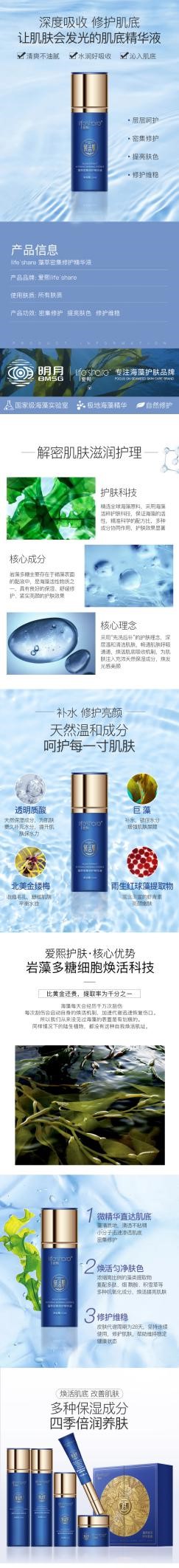 產(chǎn)品介紹:突破海藻活粹源護(hù)膚科技,專利性濃縮深海珍藻精華,匯聚天然水潤護(hù)膚精華,形成天然肌膚強(qiáng)韌屏障,補(bǔ)水鎖水,刺激膠原重塑,煥活肌膚強(qiáng)大美力。